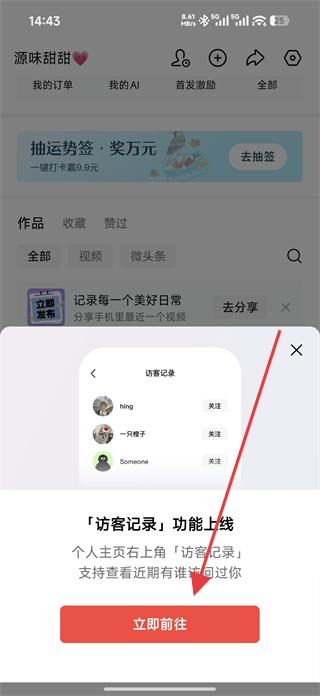 2、發布后看到訪客記錄功能上線的提示,點擊立即前往按鈕,進入訪客記錄設置頁面。