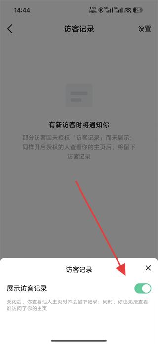 4、開啟后可選擇展示訪客記錄的開關,將其打開以便有新訪客時收到通知,后續可查看訪客記錄。