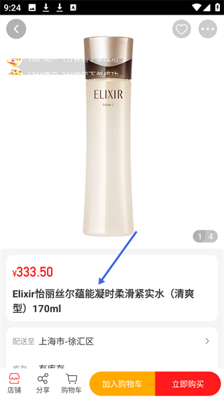 4、怡麗絲爾蘊能凝時柔滑緊實水清爽型170ml商品詳情頁,售價333.50元,配送上海徐匯區,可加入購物車或立即購買。
