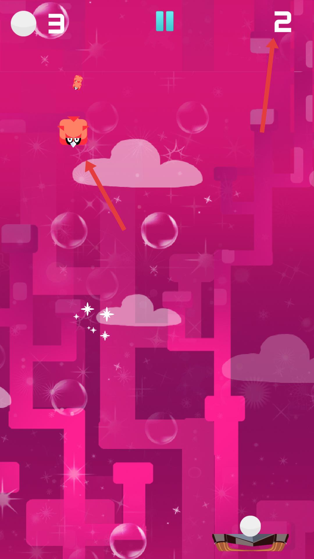 3、飛行過程中持續擊中小鳥,每成功一段距離或完成操作,就能獲得分數,右上角分數會增加。