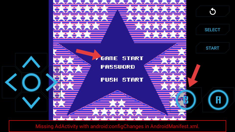 2、在游戲選擇界面,可選擇GAME START,PASSWORD等選項,選好后按提示推進,進入關卡選擇等環節。