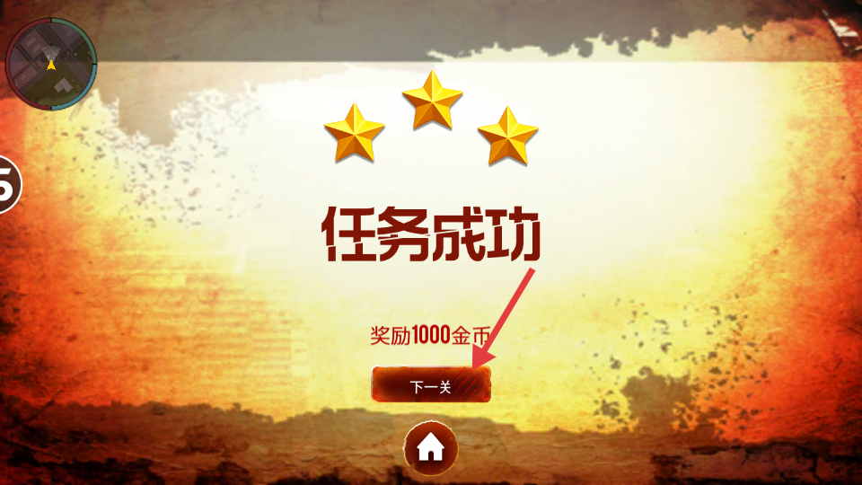 4、玩家完成游戲任務后,界面會顯示三顆星評價與金幣獎勵,點擊下一關按鈕,玩家即可繼續挑戰后續關卡。