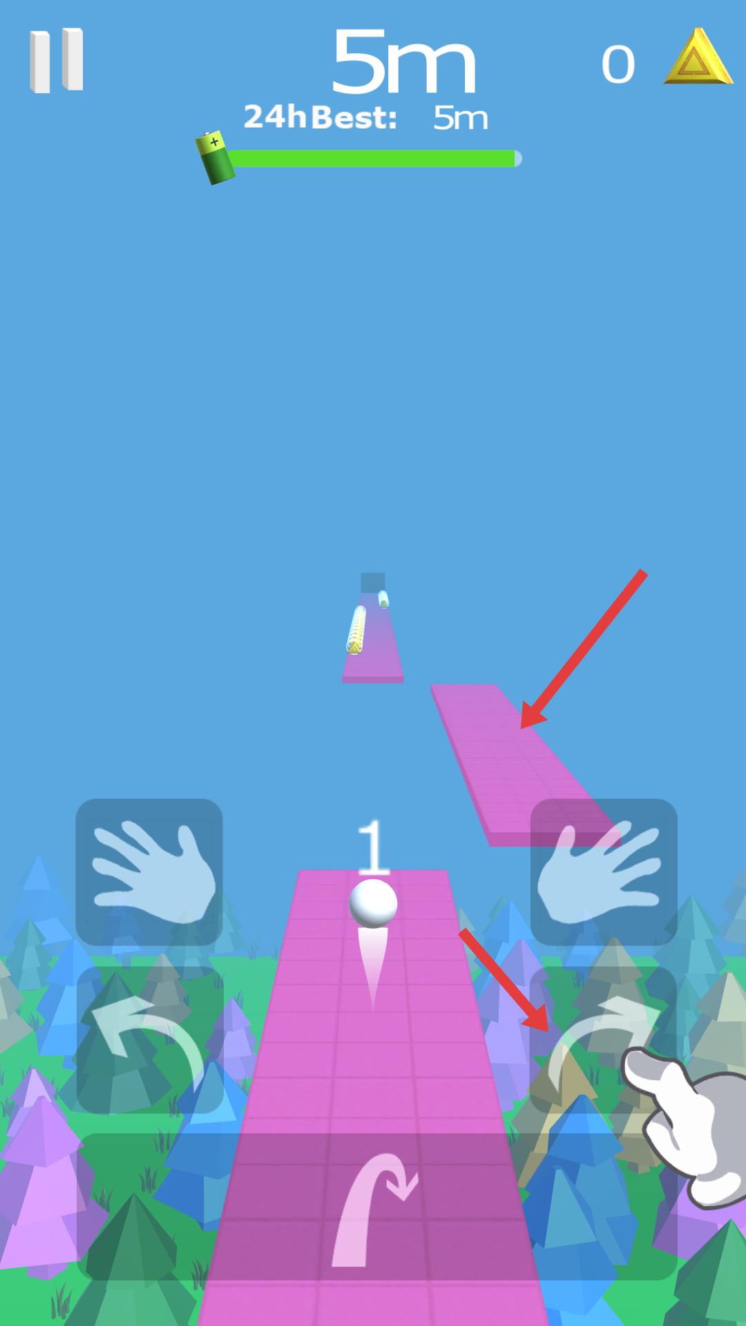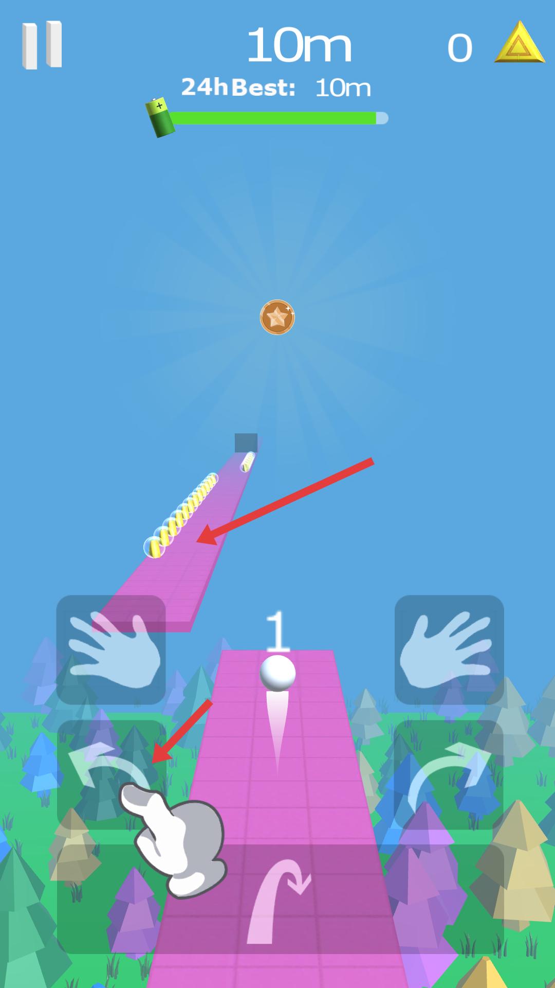 2、遇到金幣要盡量獲取,通過操作箭頭按鈕,讓小球精準移動到金幣位置,這樣能增加得分,同時繼續沿著路徑前進。