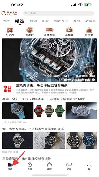 1、資訊板塊,推精選腕表內容,如三款青銅表承包海陸空場景,還有兩周動力的腕表資訊,呈現腕表動態與推薦。