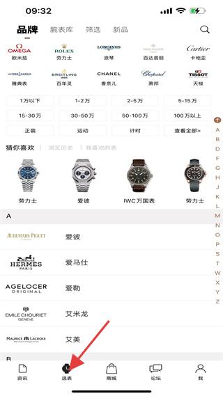 2、選表板塊匯聚歐米茄、勞力士等眾多品牌,按價格、風格分類,方便用戶挑選心儀腕表,滿足不同腕表選購需求。