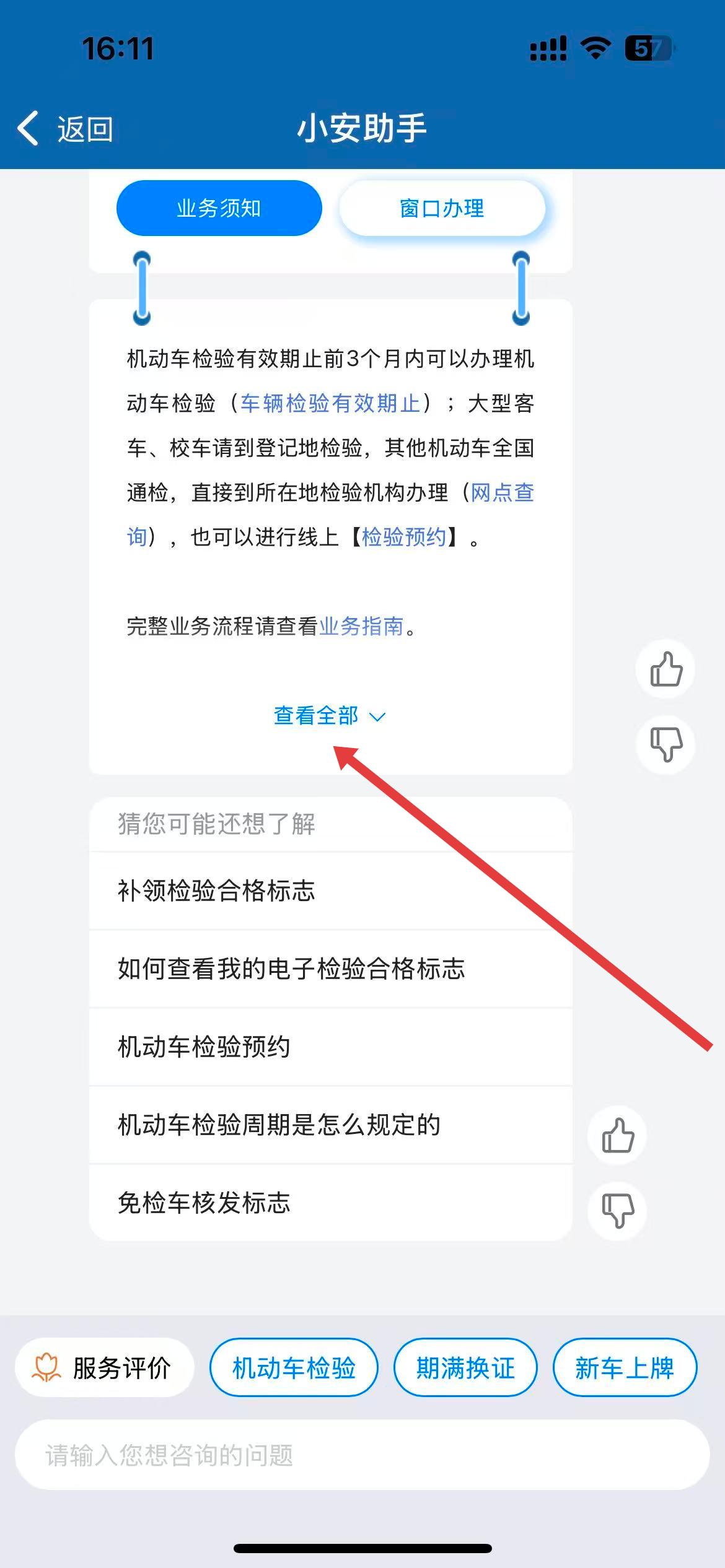 2、小安助手頁面可查看熱點業務咨詢選項,如車輛檢驗、查詢考試成績等,快速獲取相關業務信息。