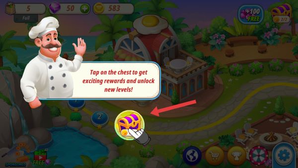 3、游戲里有寶箱,點擊寶箱能獲取誘人獎勵,還能解鎖新關卡,開啟更多烹飪挑戰。