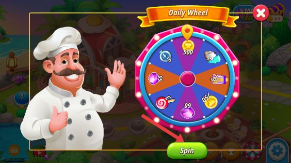 4、有每日轉盤玩法,點擊Spin按鈕轉動轉盤,有機會獲得金幣、寶石等各類獎勵。