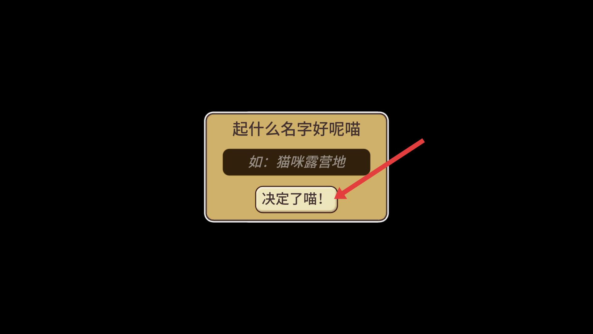 1、游戲開始時會出現取名界面,可參考示例貓咪露營地來取名,取好后點擊決定了喵,就能進入游戲主場景。