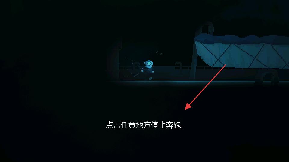 3、游戲操作指引,點擊任意地方停止奔跑,按提示點擊,讓角色停下,熟悉啟停操作。