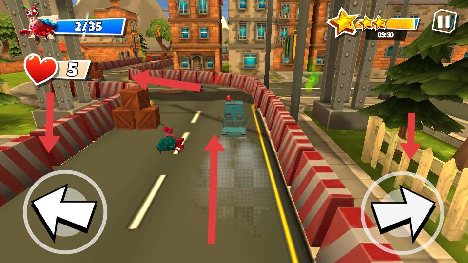 4、進入瘋狂賽車任務后,操控角色在道路上行駛,利用左右方向按鈕控制移動方向,躲避障礙,朝著目標前進,完成任務。