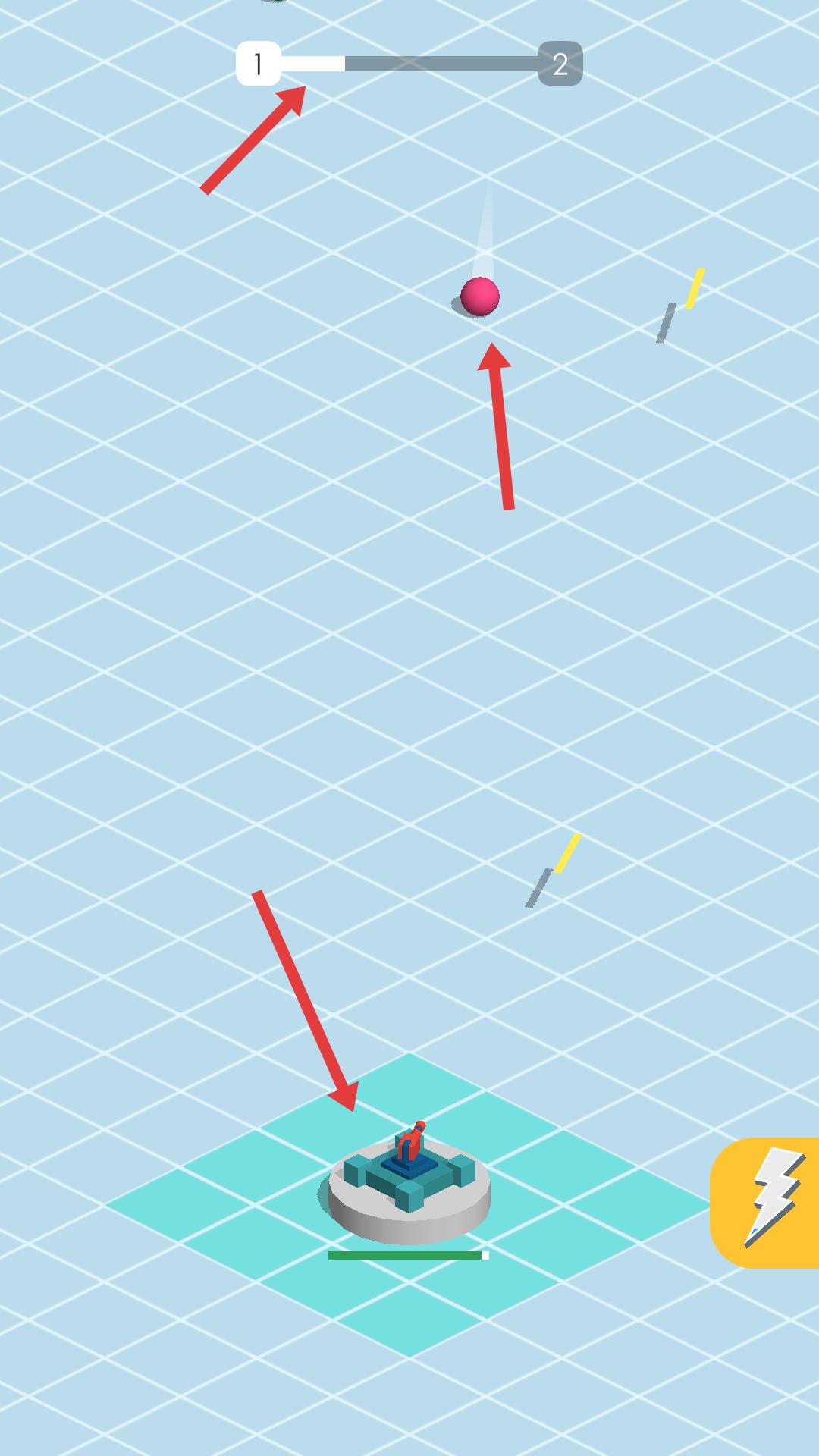 2、進入游戲后操控炮臺瞄準紅色球體等目標射擊,同時留意上方進度條,推進關卡進程,積累分數。