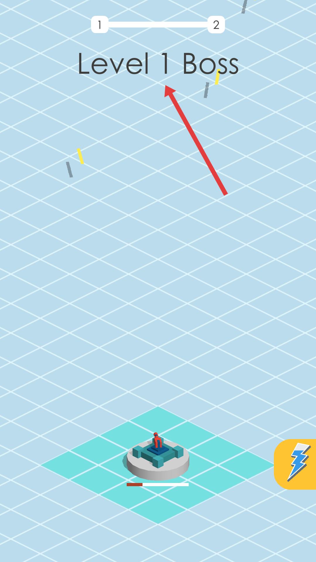 3、當界面顯示第一關Boss時,意味著將挑戰第一關的Boss,集中火力攻擊Boss,注意躲避其攻擊。