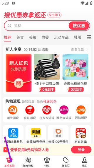 購物之前用羊毛省錢搜隱藏優惠券,下單后還有高達90%的現金返利,快速到賬;