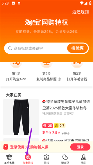 復制淘寶商品標題,打開羊毛省錢app,為您自動查找優惠信息;
