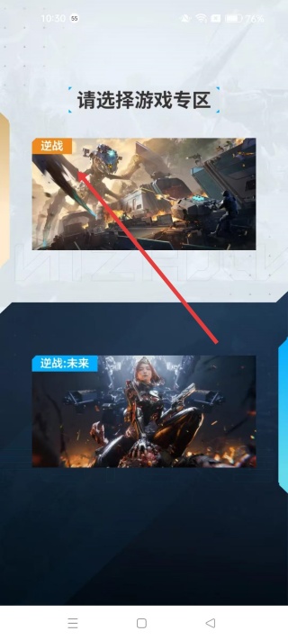 2、游戲專區選擇頁面,可選擇逆戰或逆戰未來專區,進入對應游戲板塊,獲取專屬游戲內容。
