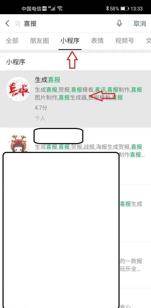 1、打開手機微信,點擊搜索,彈出點擊喜報,進入。