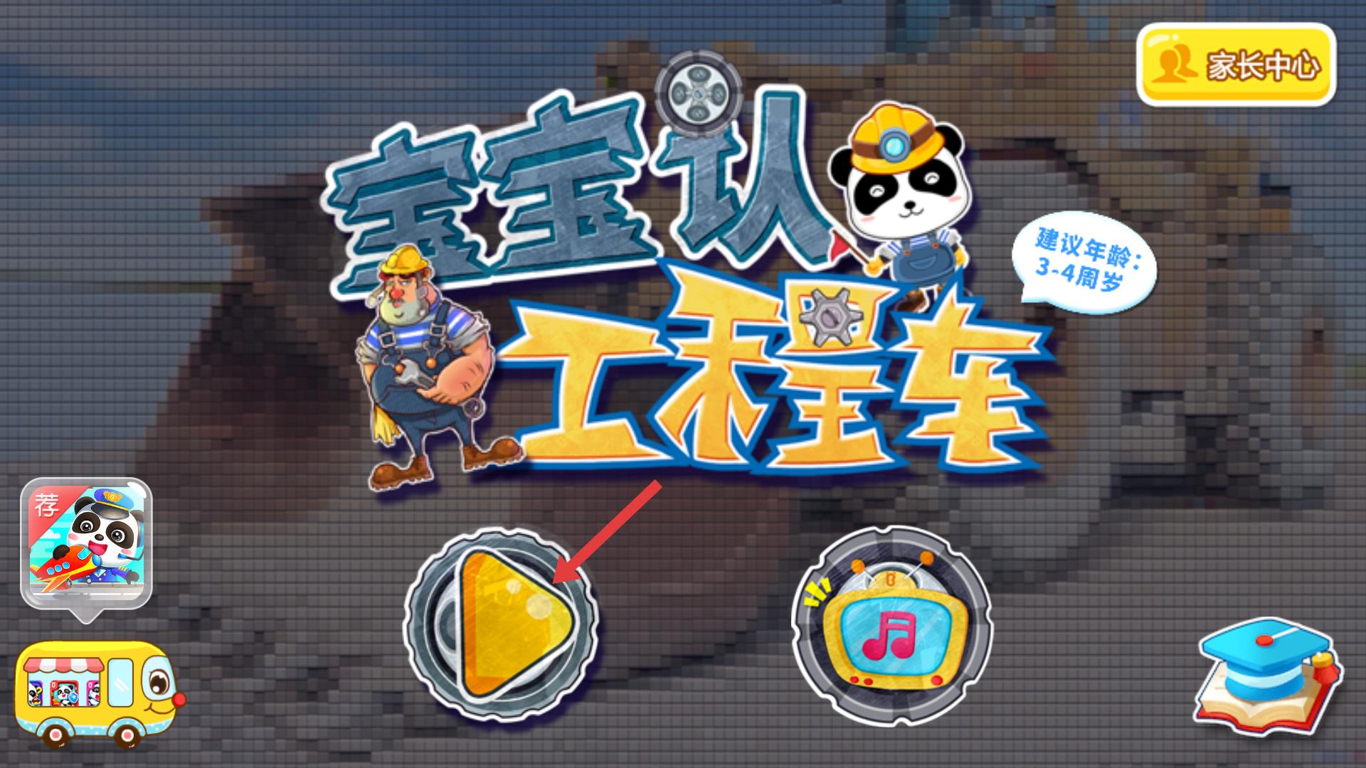 1、游戲主界面點擊三角形按鈕,即可進入游戲,開啟認識工程車的趣味學習之旅。