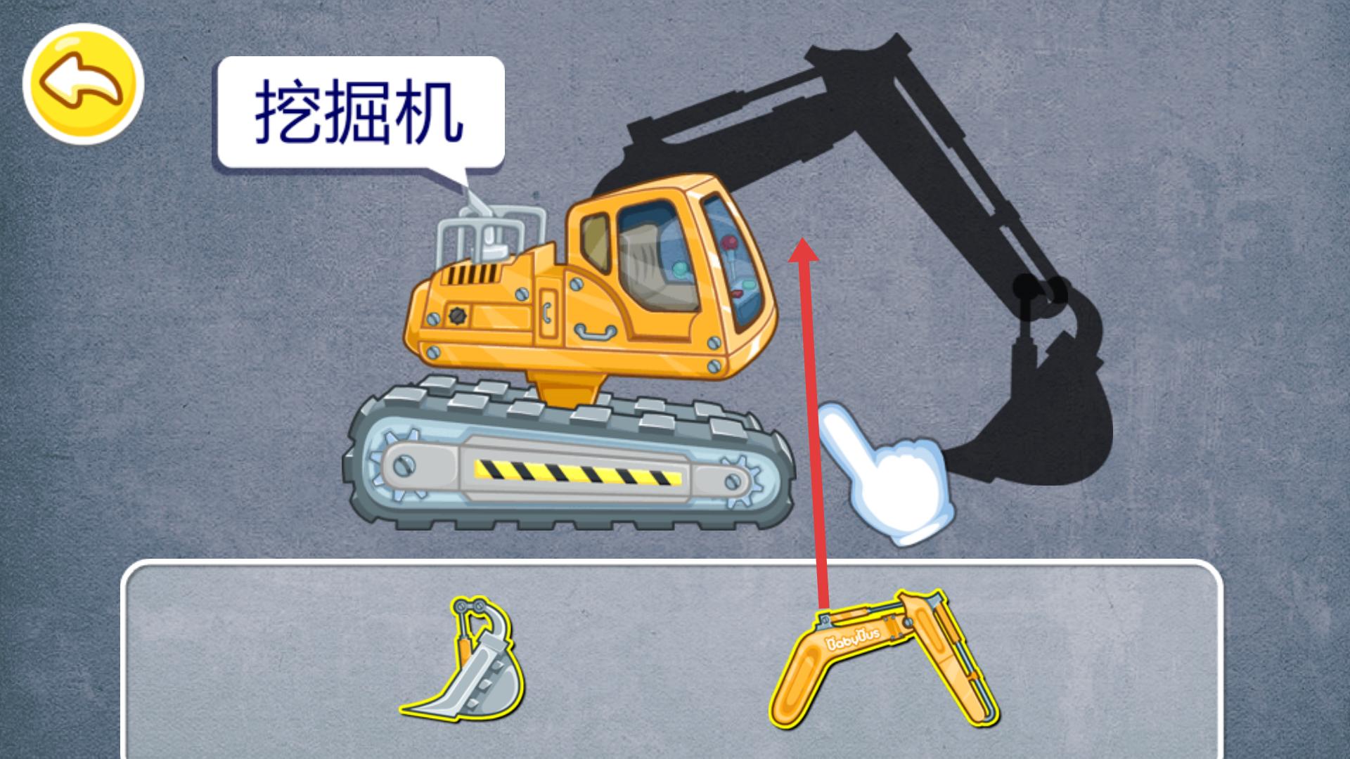 3、接著會有工程車部件匹配環節,根據挖掘機的影子和部件形狀,選擇正確的部件進行匹配。