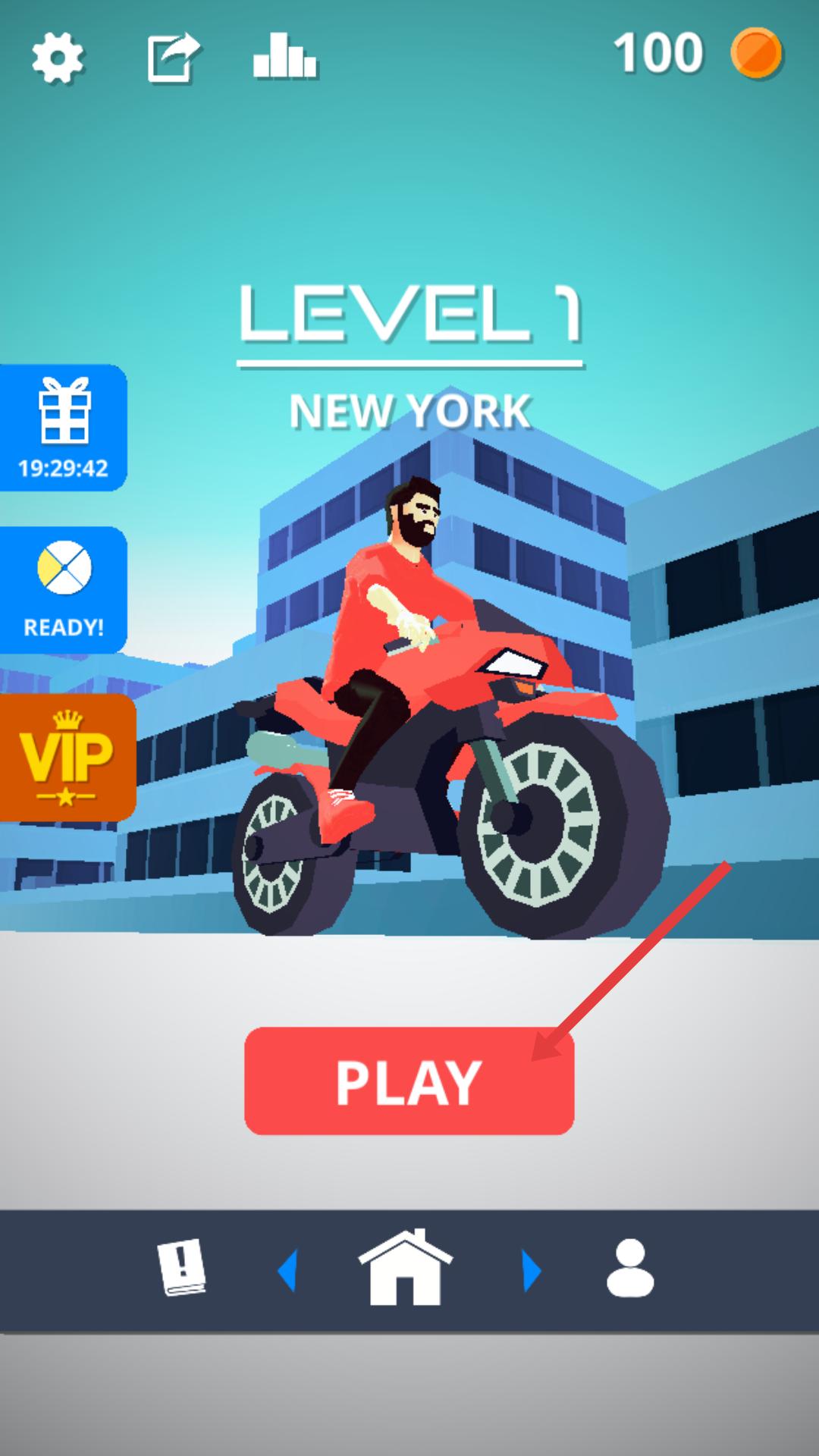 1、游戲主界面點擊紅色PLAY按鈕,即可進入第一關紐約場景,開啟摩托車闖關挑戰。