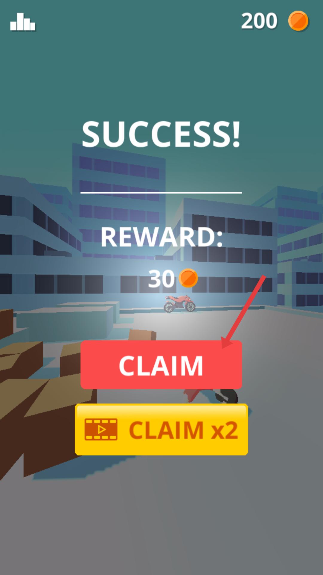 4、成功通關后界面顯示SUCCESS,點擊紅色CLAIM按鈕,可領取30枚金幣獎勵。