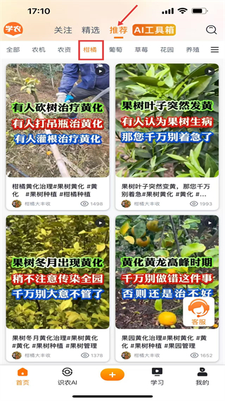 3、進入柑橘版塊,可查看柑橘黃化治理等種植技術內容,含多種黃化防治方法的分享,幫助解決柑橘種植中的常見問題。