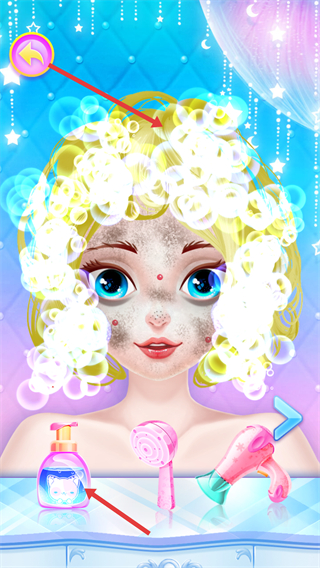 1、先使用洗發水等洗護用品,給角色的頭發進行清潔,打出豐富泡沫,為后續美發做準備。