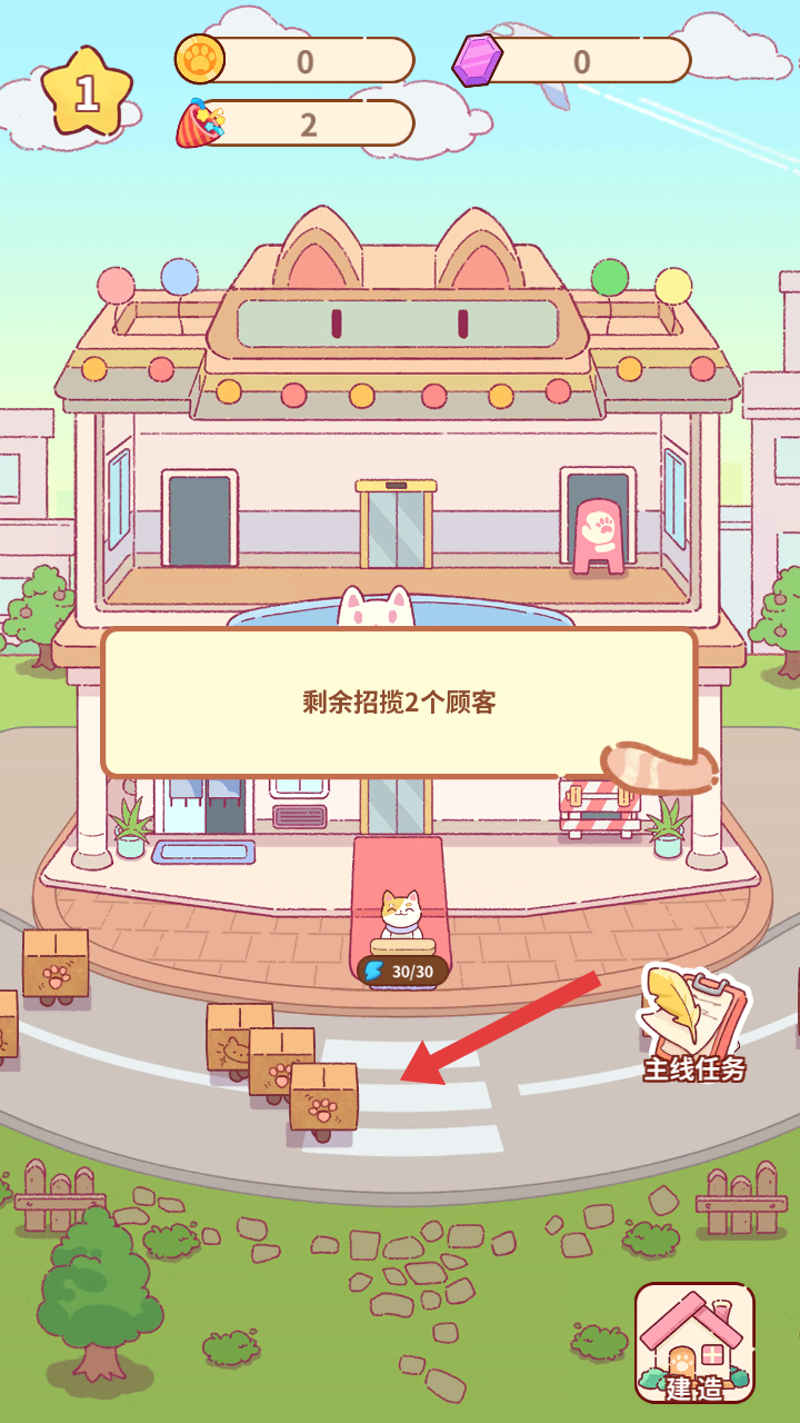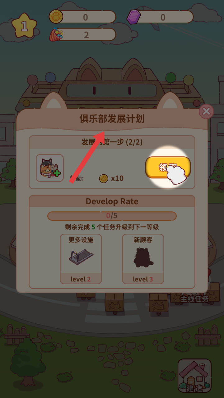 1、進入游戲,能看到可愛的俱樂部建筑,需招攬顧客,完成招攬目標可推進游戲,開啟經營之旅。