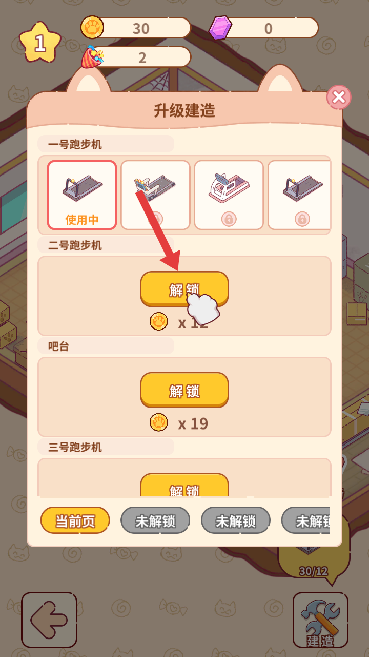 3、升級建造界面,可花費金幣解鎖跑步機、吧臺等設施,解鎖后能豐富俱樂部功能,提升經營能力。